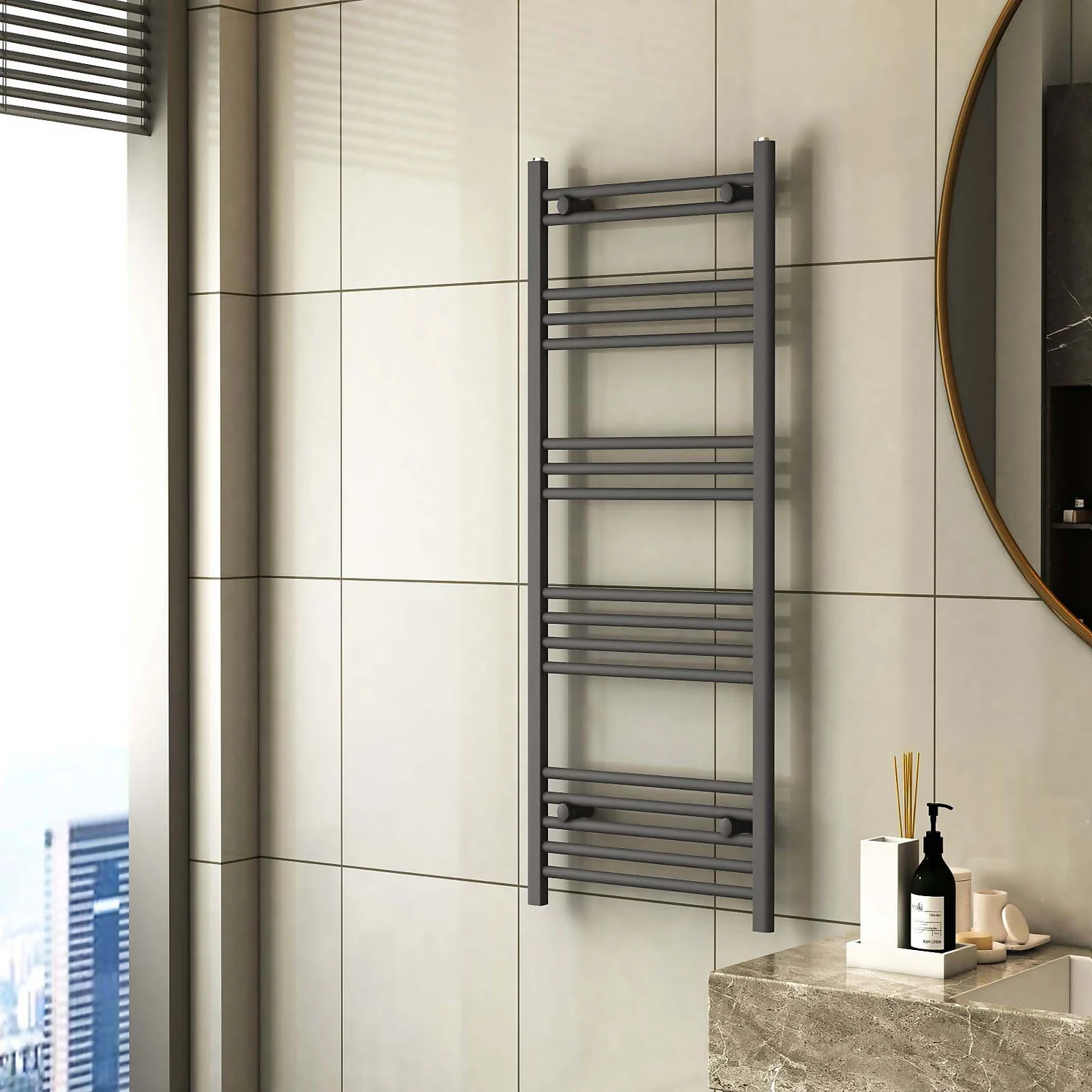 VURTU5 Ladder Style Heated Towel Rail Radiator & 17 Horizontal Round Tubes 1200mm X 600mm – Anthracite