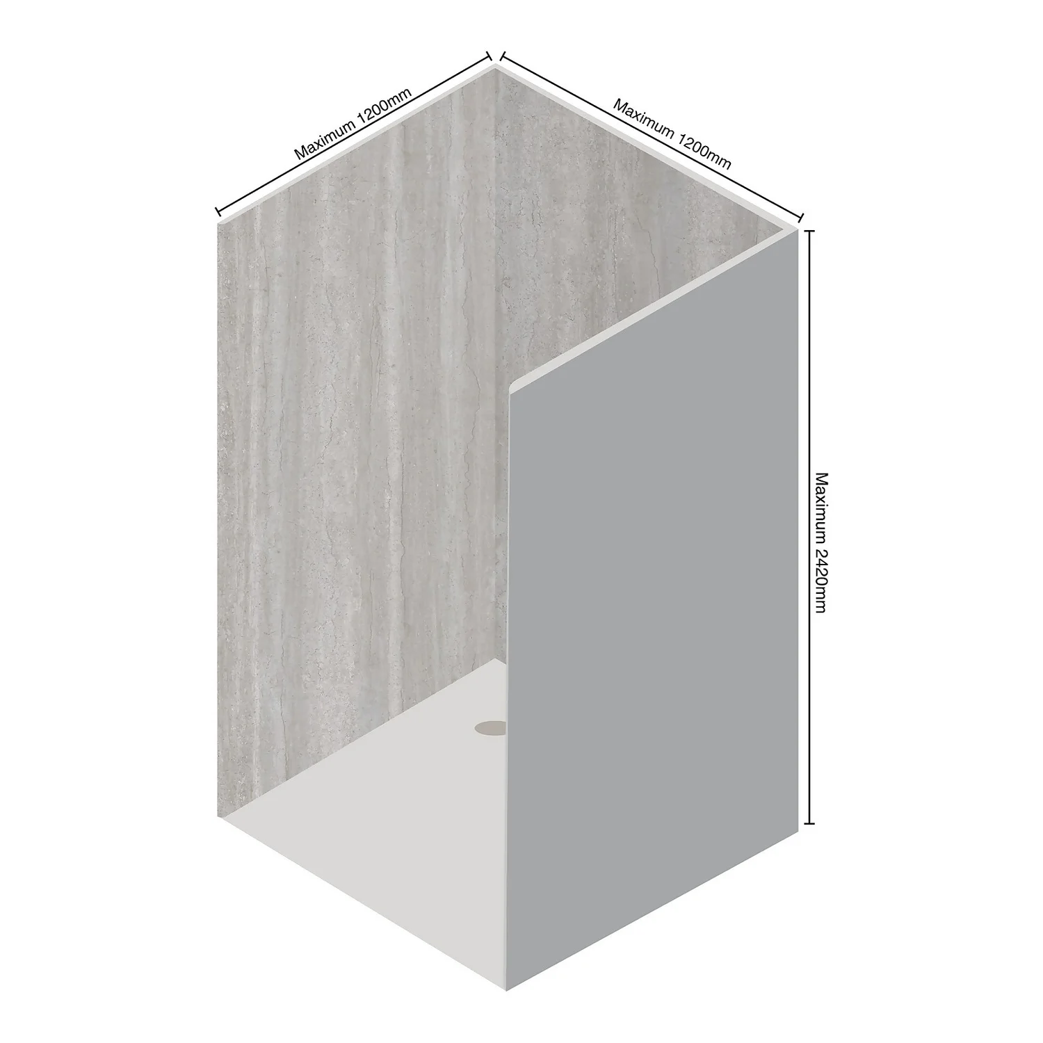 The product you are looking at here is a 3-sided kit. Each panel measures 1200mm x 2420mm x 10mm – perfect for a shower enclosure and easily cut down to size on site.