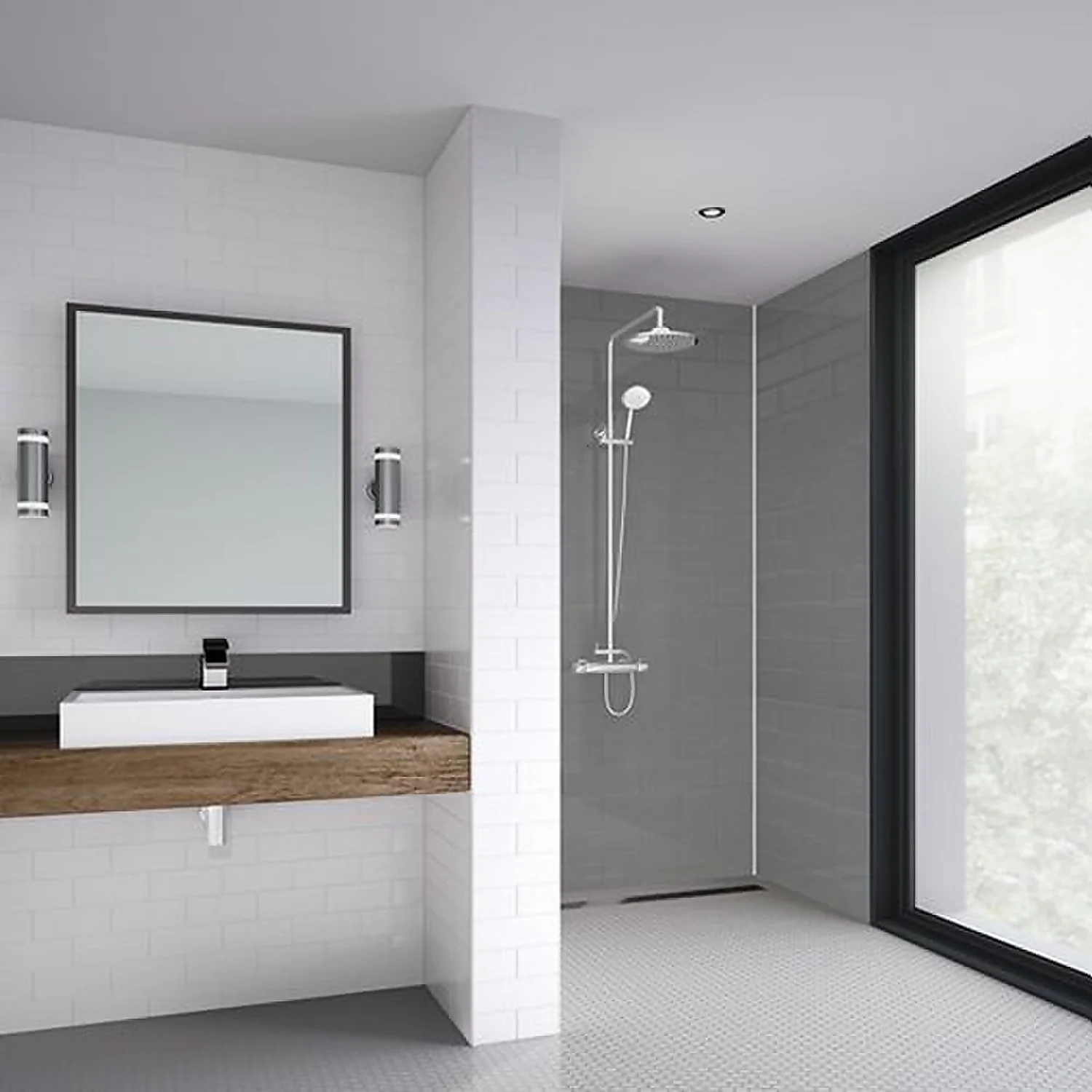 Wetwall Composite panels are great alternative to tiles. Featuring the urban look of embossed tiles, without any of the awkward installation needed. Our vertical panels are perfect for shower enclosures, measuring 1220 (w) x 2440mm (h) x 3mm (depth)